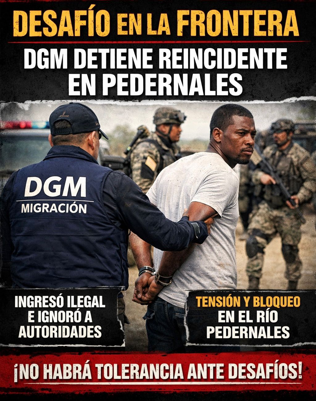 Pedernales, República Dominicana. — La Dirección General de Migración (DGM) actuó con determinación al detener a un ciudadano domínico-haitiano que violó los protocolos fronterizos y desafió abiertamente a las autoridades, en un incidente que pone a prueba el control del Estado en la línea limítrofe.